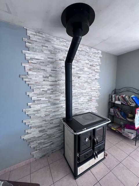Le client nous a contacté pour installer une cuisinière à bois. Sur ce chantier, nous avons réalisé l'installation d'une cuisinière à bois de la marque LA NORDICA modèle ROSETTA SINISTRA 5.0 PARCHEMIN.