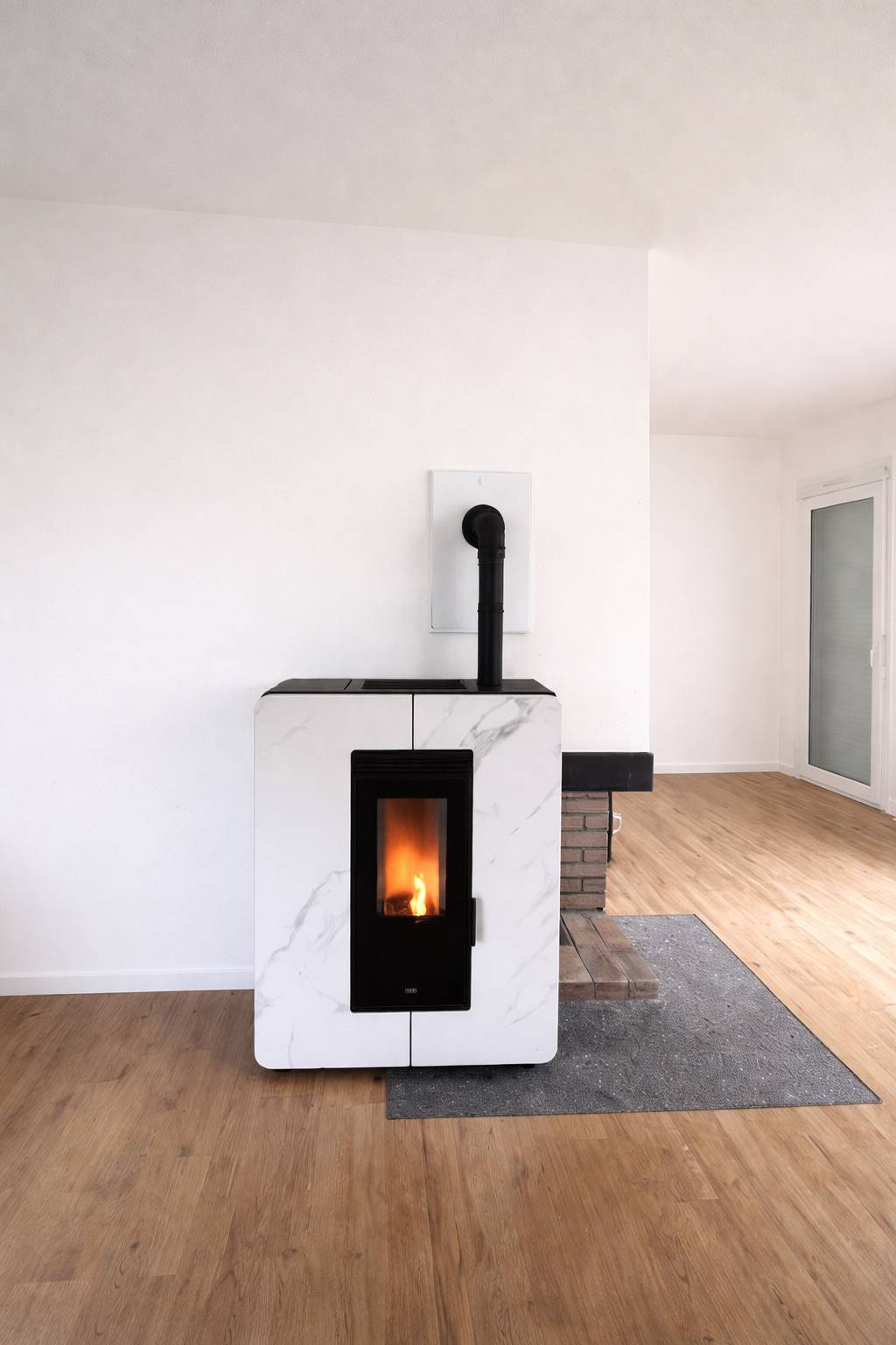 - la pose du poêle à granulés XS10K-G Astra Stone blanc,